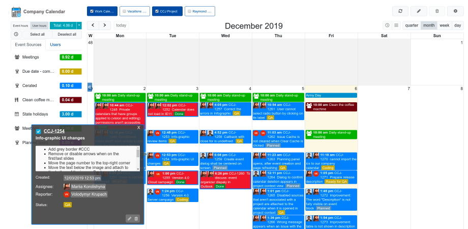 Jira Google Calendar Integration 2024. Export to ICS. 🧩 Customize your calendar display and event filtering to better manage your time and meet your objectives. Hi @Maité Gé Varona welcome to the Atlassian Community. With multiple projects in the works and hundreds of tasks on your plate – how are you supposed to find time to actually get stuff done? Calendar Event to Jira Worklog is a Google Calendar add-on that allows you to create worklogs in your selected Atlassian Jira Cloud instance from your calendar event. Read the guide Learn from the experts Find out how easy it is to connect tools with Unito at our next demo webinar. Their are market place plugins for this integration you may try: jira and google calendar integration. Personalize the period, working days, working hours, event slot size, event types, filtering parameters, and color schemes for each team and task type. Upload from Google Drive Issue Events: Google Calendar integration for Jira – Appfire There was a problem accessing this content Check your network connection, refresh the page, and try again.